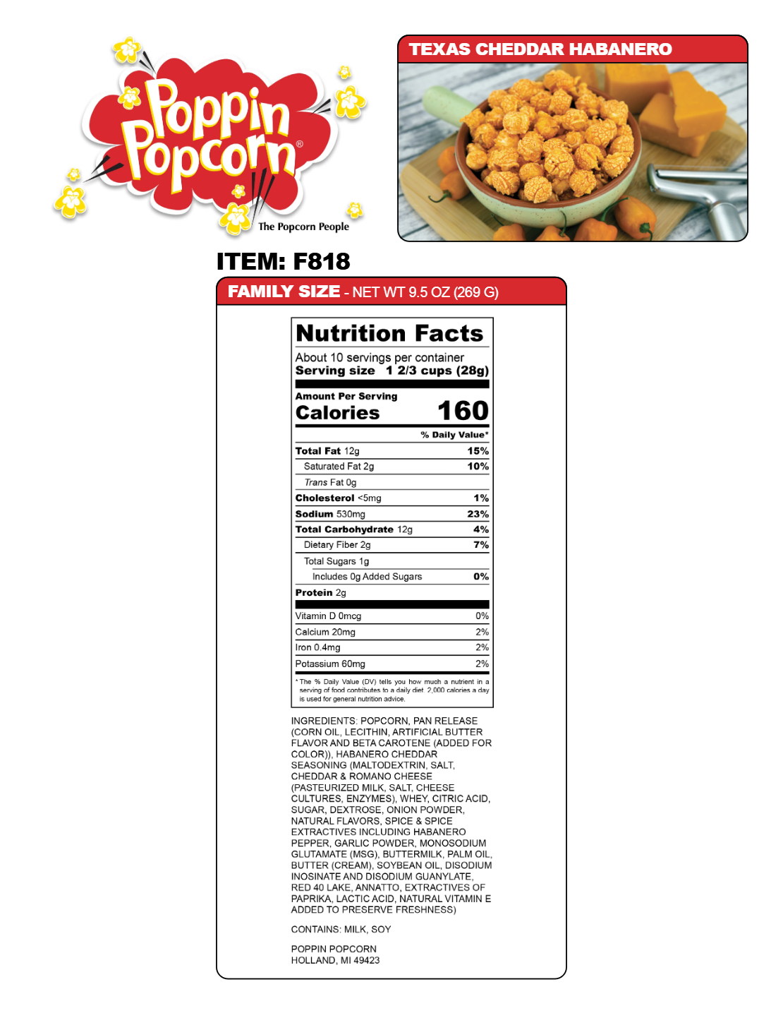 Poppin' Popcorn is Gluten Free, GMO Free, Trans Fat Free & has No Added Preservatives!